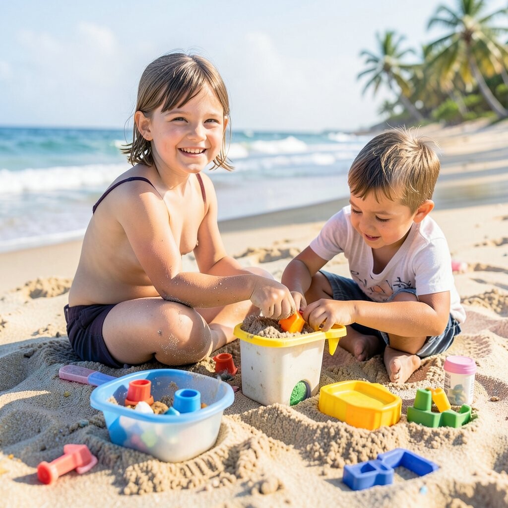 This is a cost-effective way to keep your kids entertained at the beach. Plus, using items from home adds a personal touch to their playtime. It’s also a fun way to teach kids about recycling and reusing items.