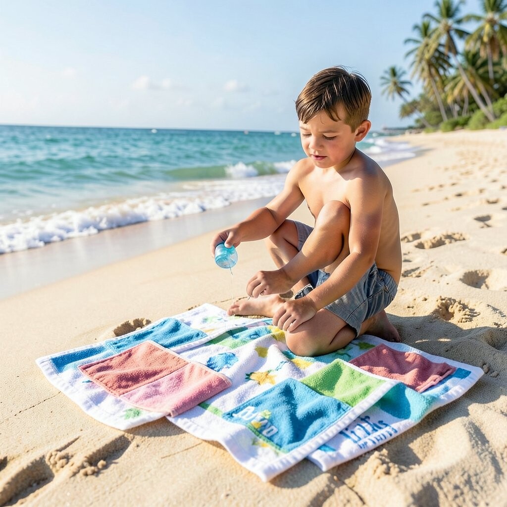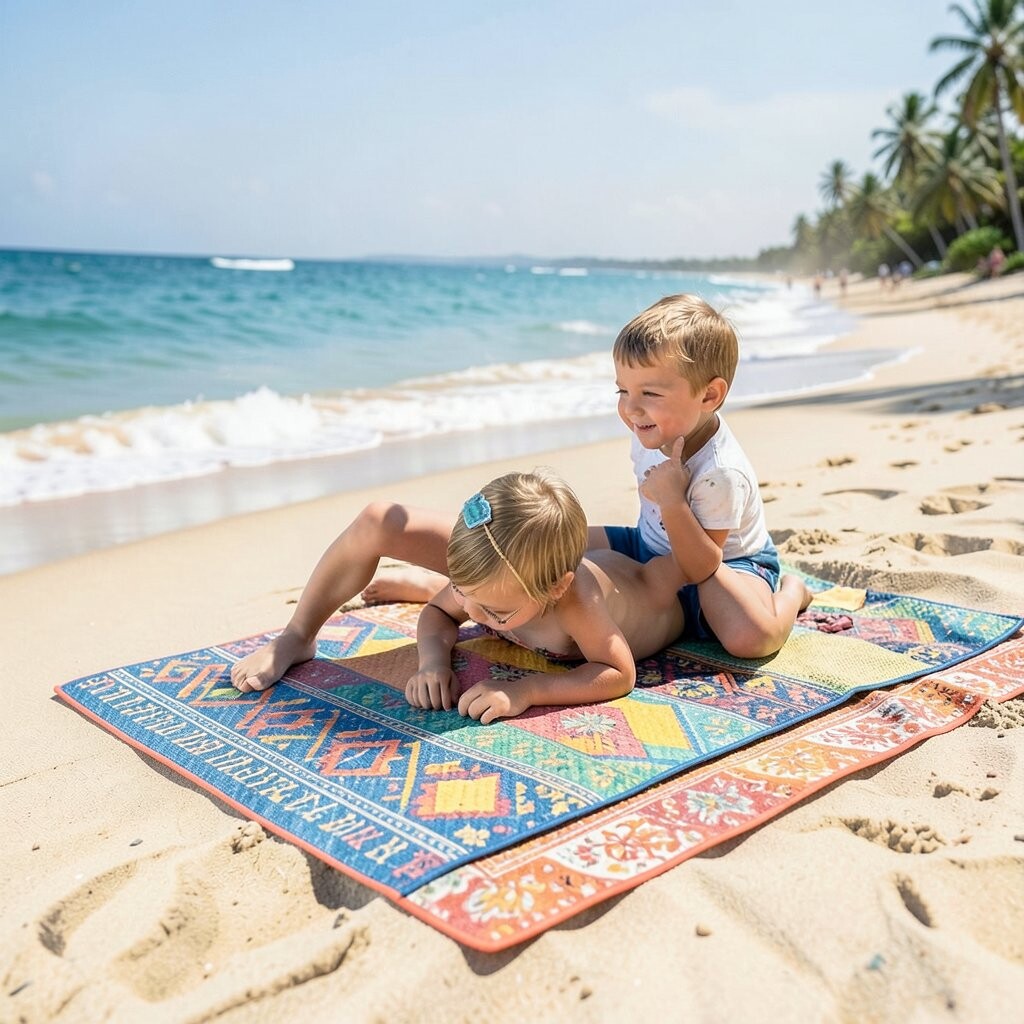A sand-free beach mat is perfect for keeping your play area clean. These mats are made from special materials that let sand fall through but not come back up. Your kids can sit and eat without worrying about sand getting everywhere.