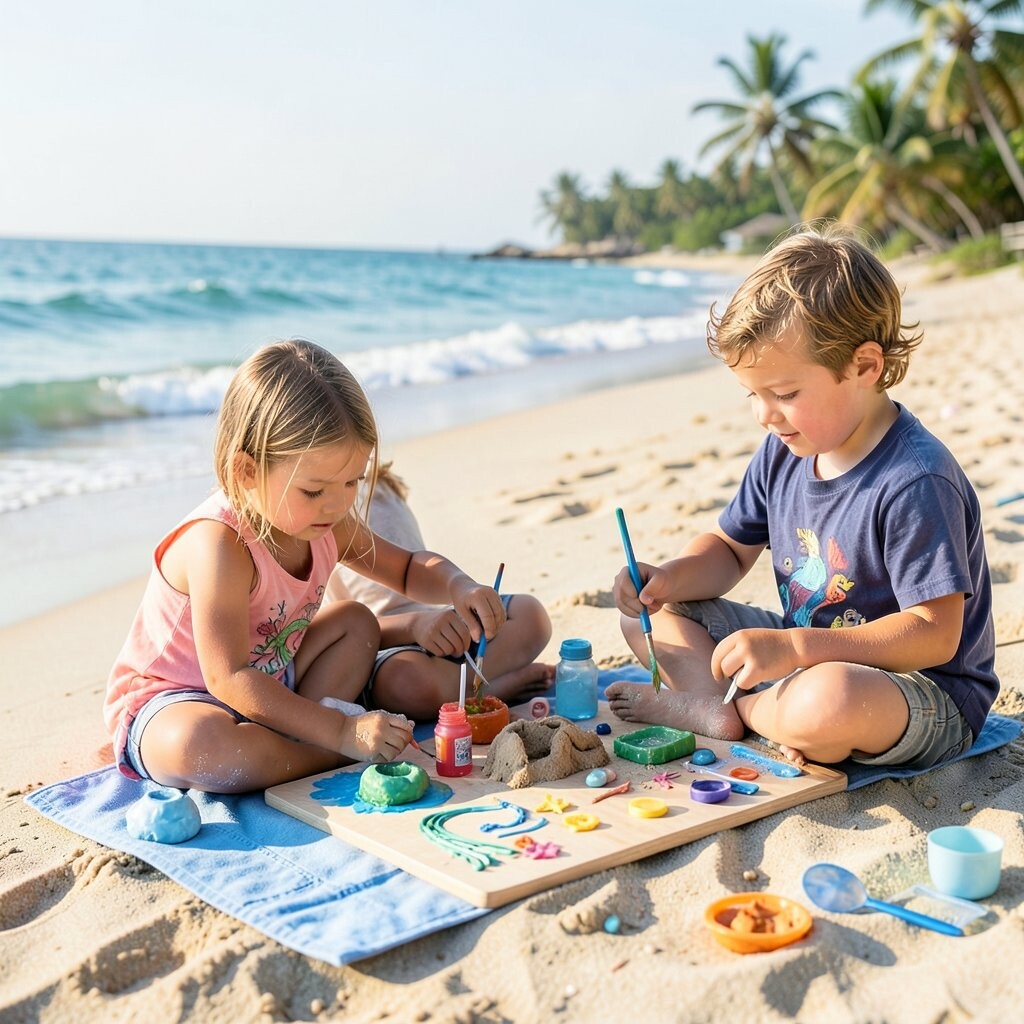 Bring craft supplies to the beach to make ocean-themed projects. Kids can create fish, boats, or sea creatures using paper, glue, and markers. This activity encourages creativity and keeps kids entertained.