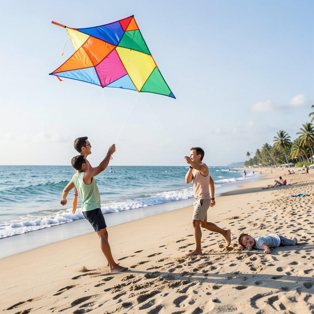 Flying a kite at the beach is both fun and relaxing. The open space and ocean breeze are perfect for keeping your kite in the air. Choose a colorful kite to add some flair to the sky.