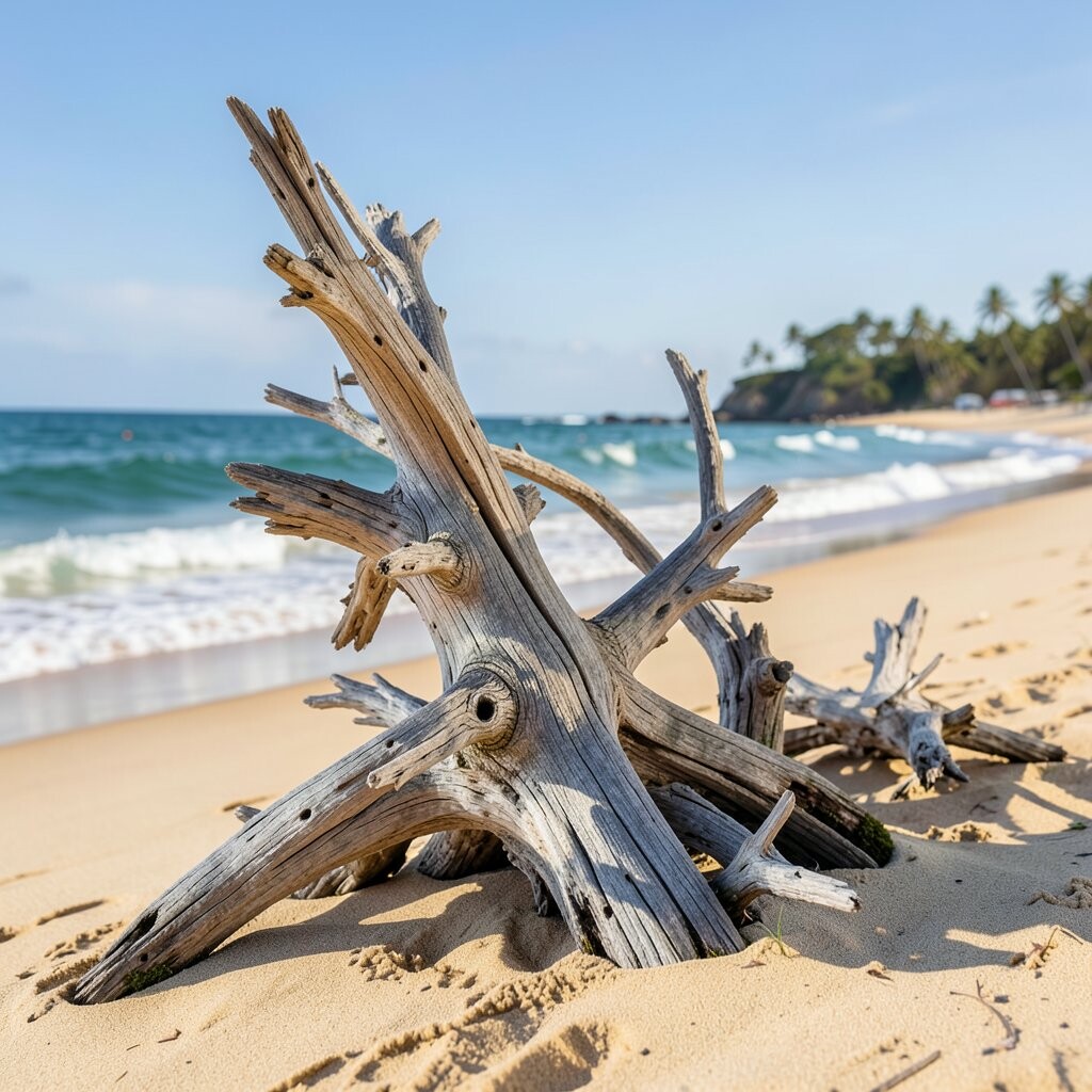 Driftwood is often found on the beach and can be used to create sculptures. Gather pieces of wood and other natural materials you find. Let your imagination guide you in building something unique.