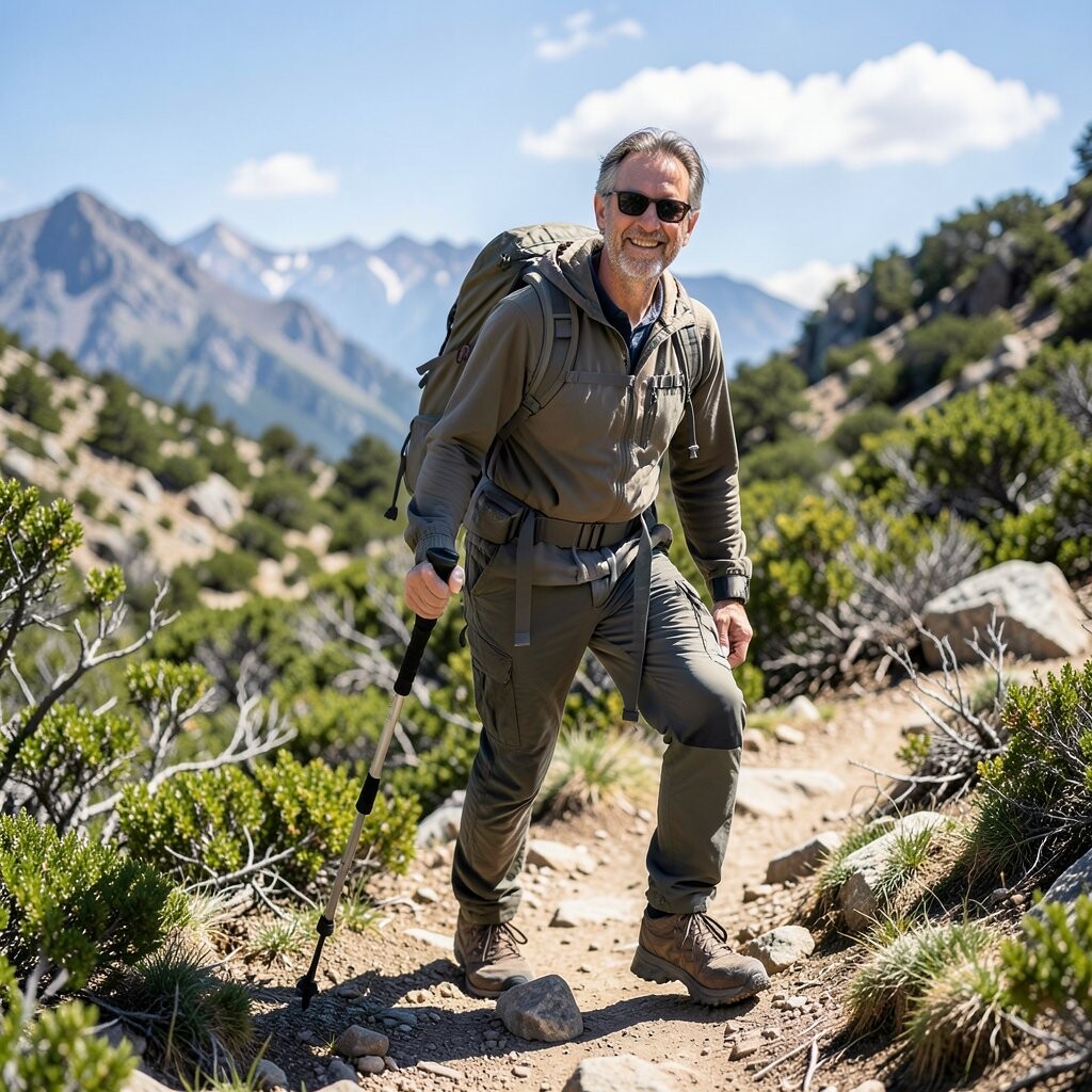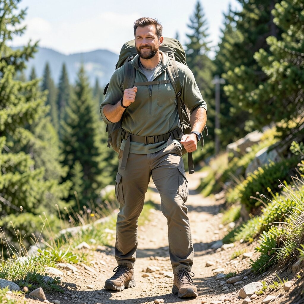 Looking thoughtfully down the trail is a great way to capture the journey. This pose shows you are in the moment, enjoying the path ahead. It’s perfect for those who value the experience over the destination.
