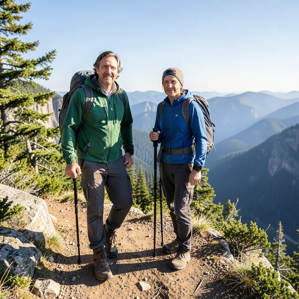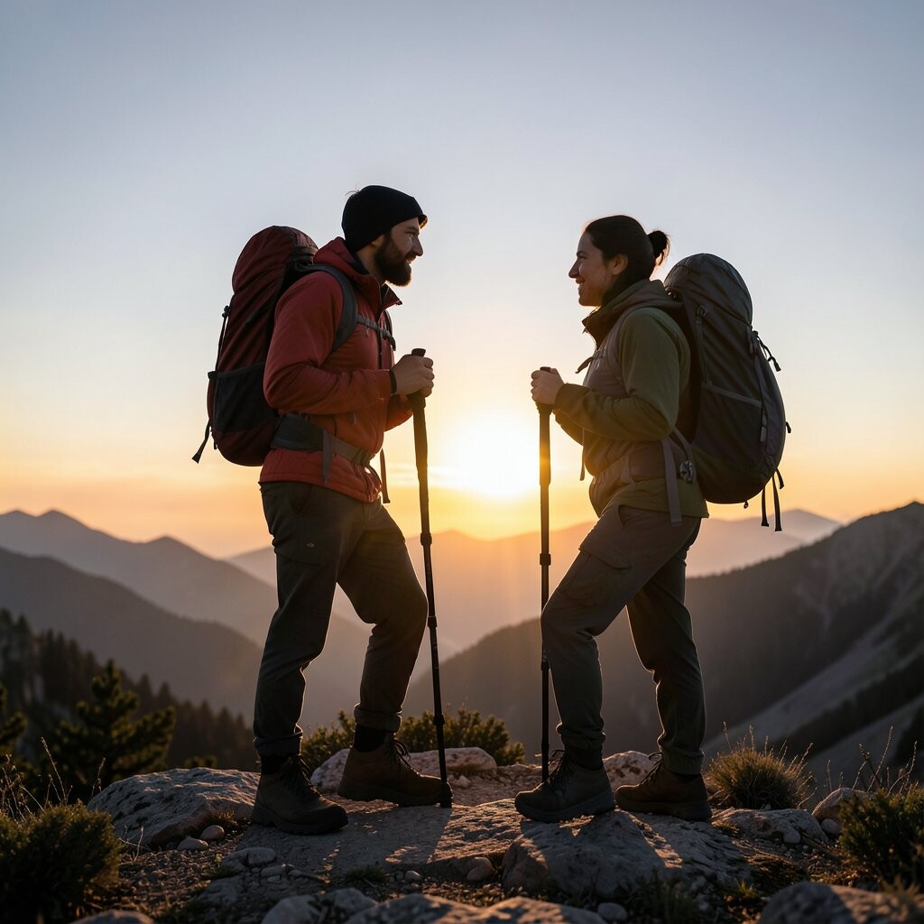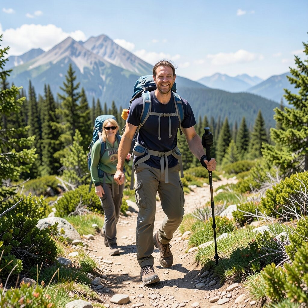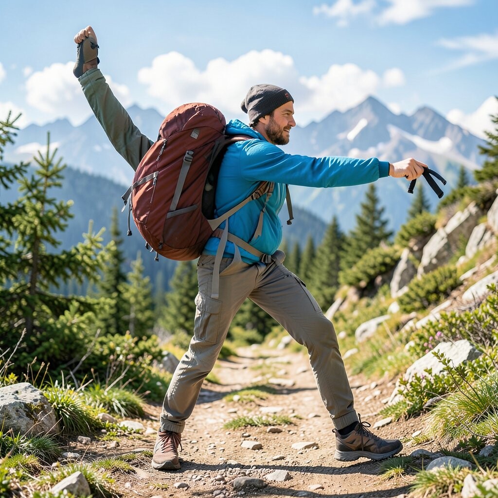 Position yourself against a backdrop of trees or hills to add depth to your photo. This pose is both practical and symbolic, reflecting the journey’s demands. Consider using this pose at the start or end of your hike.