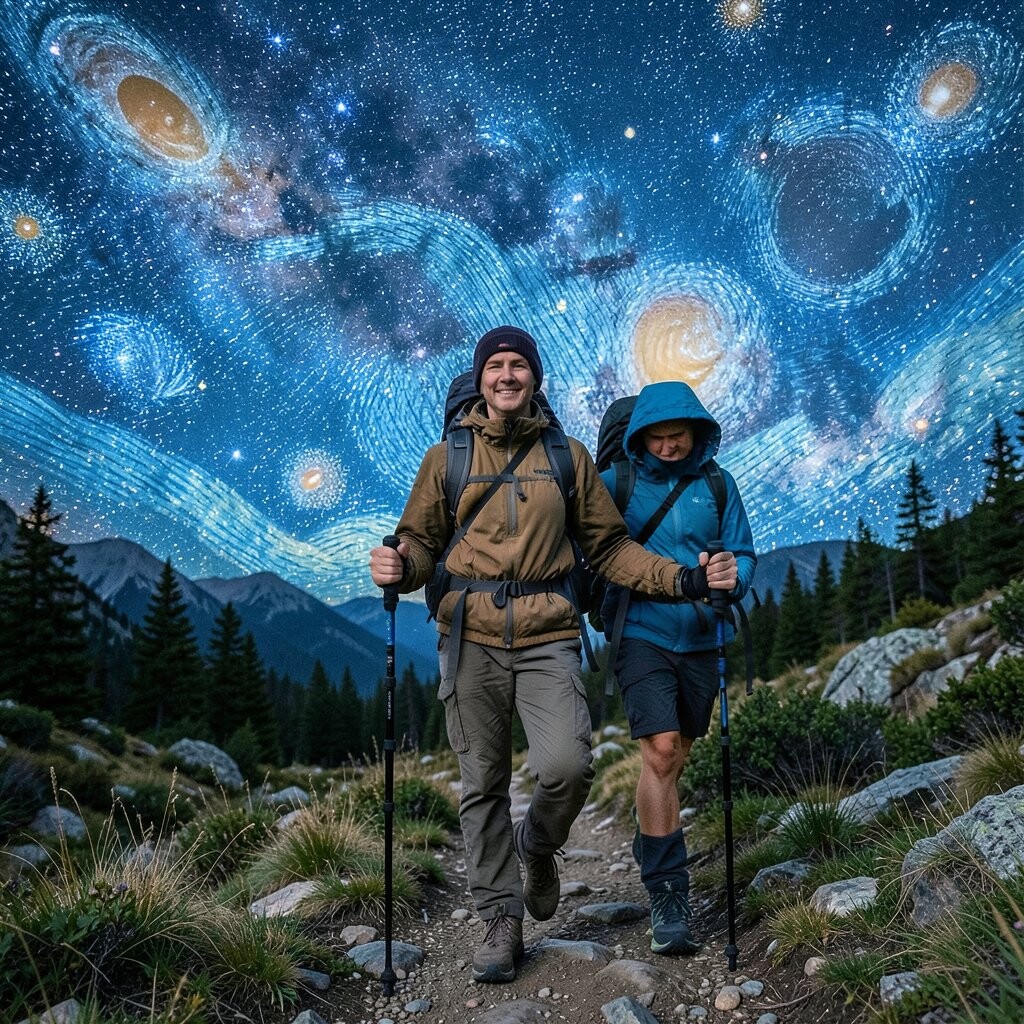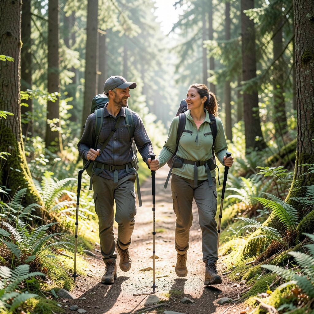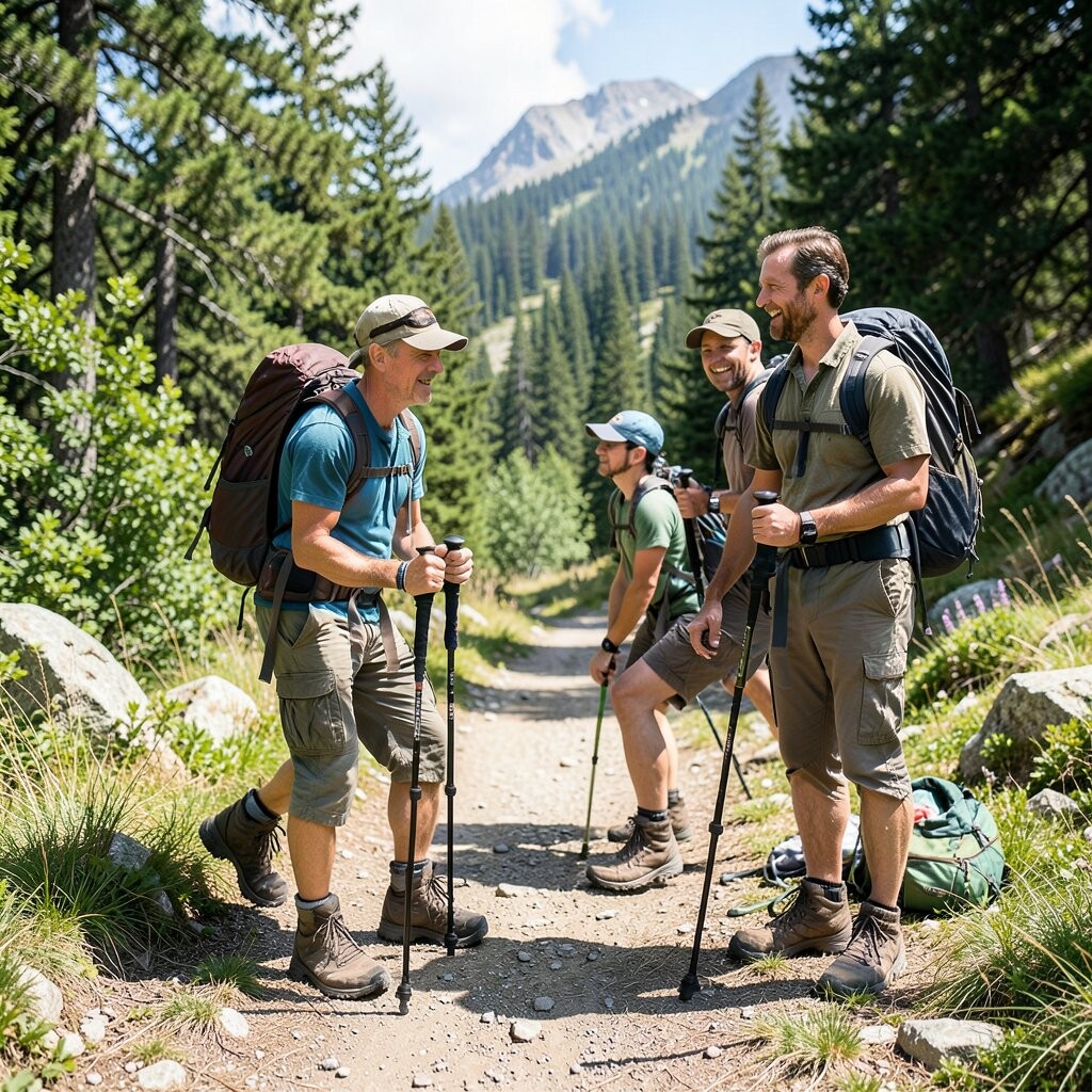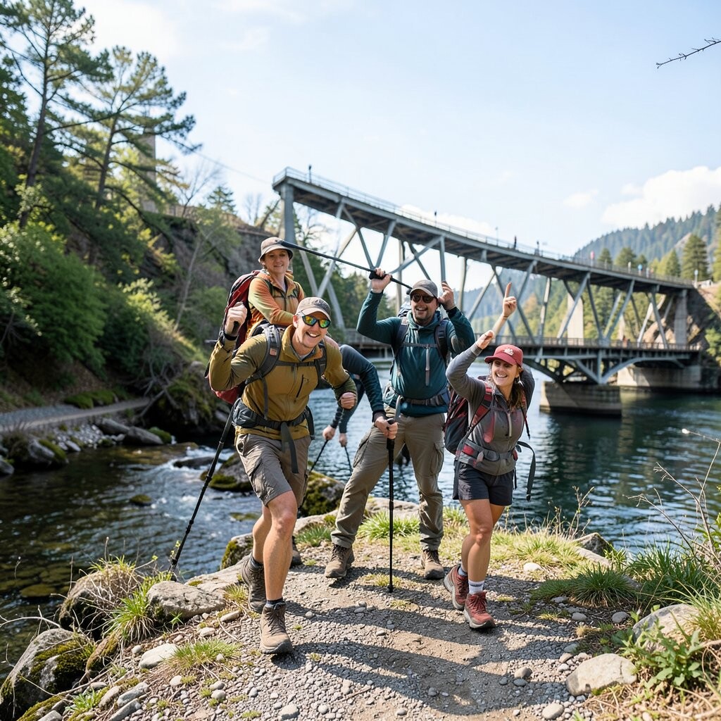 Position yourself against a backdrop of trees or hills to add depth to your photo. This pose is both practical and symbolic, reflecting the journey’s demands. Consider using this pose at the start or end of your hike.