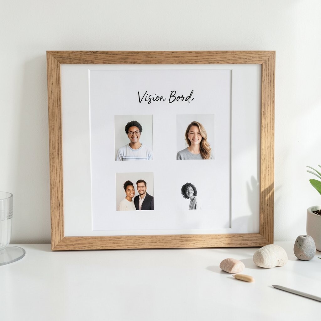 A vision board is a collection of images and words that show your goals or dreams. You can use magazines, photos, and even digital tools to create one. This visual tool helps you stay focused on what you want to achieve.