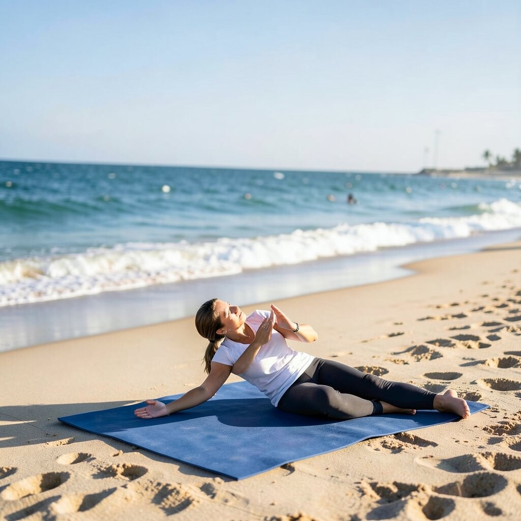 Practicing yoga on the beach combines the benefits of exercise with the peacefulness of nature. The sound of the waves and the gentle breeze create a calming environment for your yoga session. Bring a mat or towel and find a quiet spot to practice.