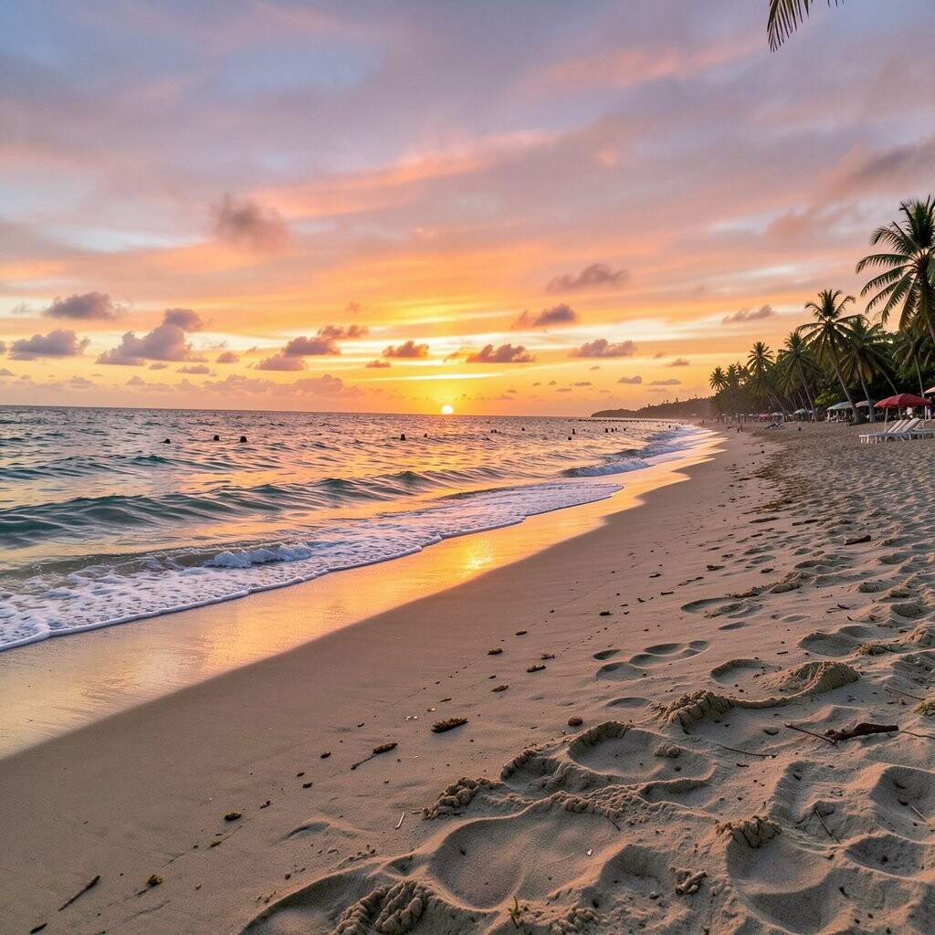 Watching the sunset at the beach is a beautiful way to end your day. The sky transforms into a canvas of colors as the sun dips below the horizon. Find a cozy spot to sit and watch the breathtaking view unfold.