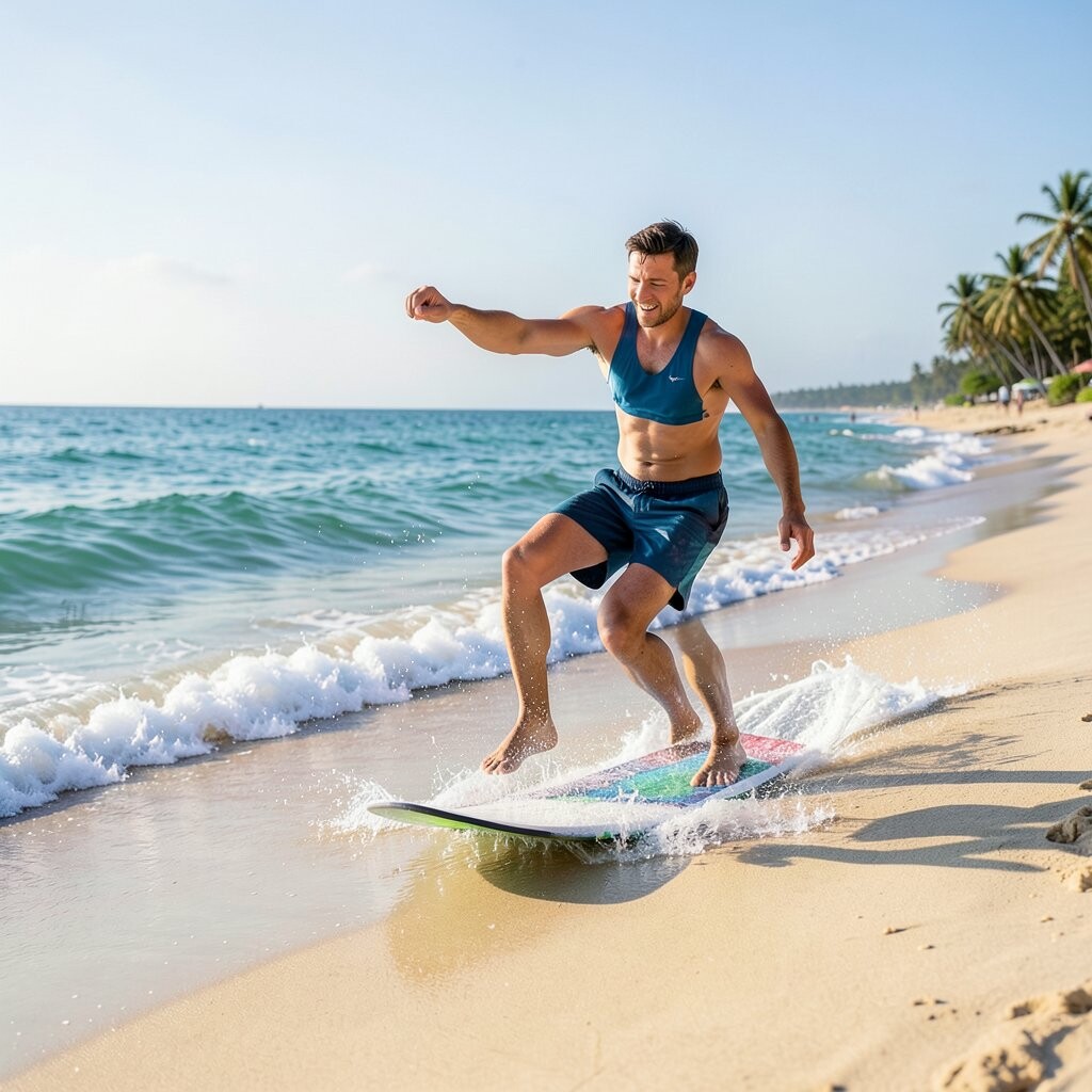 Skimboarding is a thrilling activity that involves riding a small board across the shallow water near the shore. It’s similar to surfing but done in the surf zone. Skimboarding is a fun way to enjoy the waves without wading too far into the ocean.
