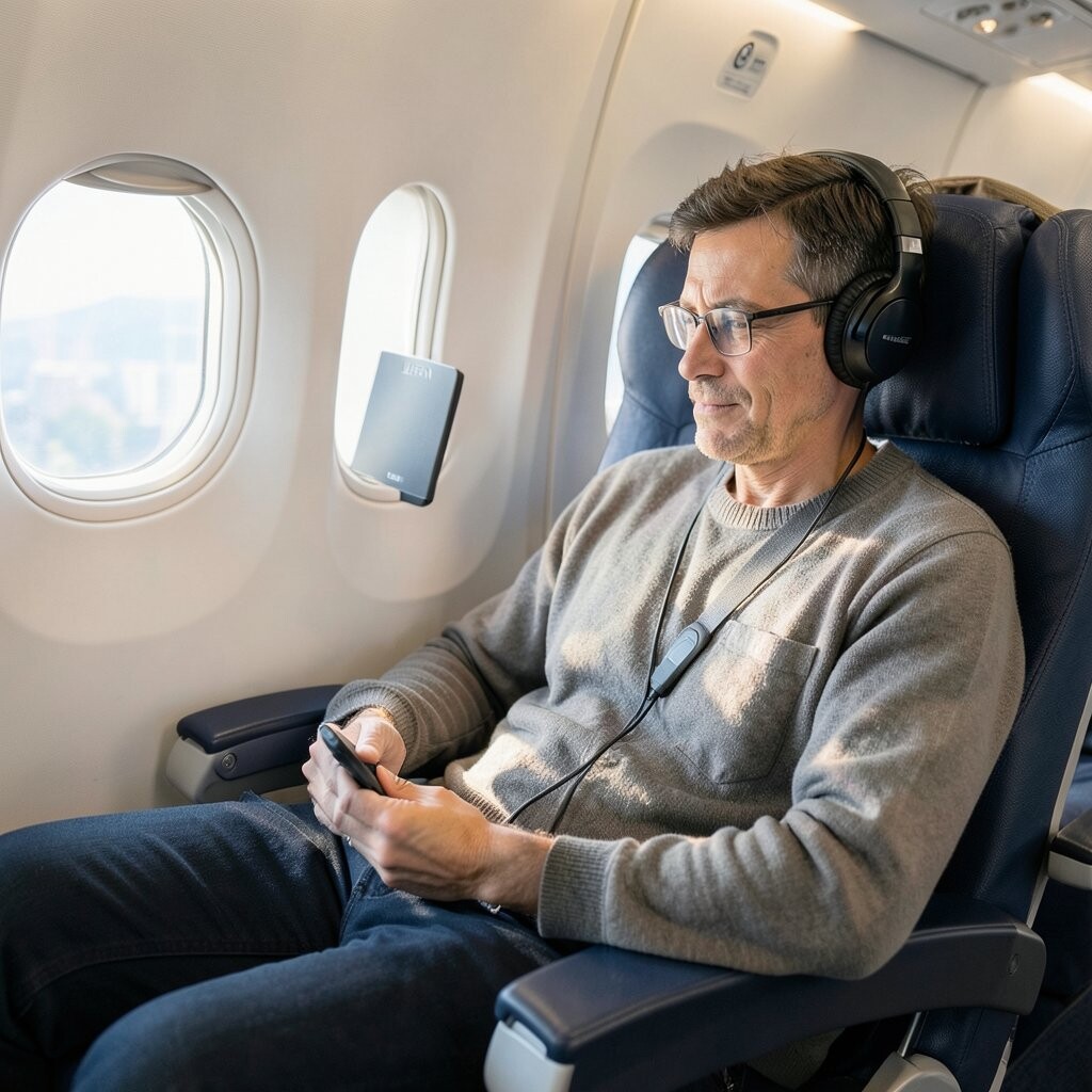 Explore different genres you might not usually listen to. This can be a fun way to discover new artists and sounds you enjoy. Keep your device charged and have a backup battery pack if the flight is long.