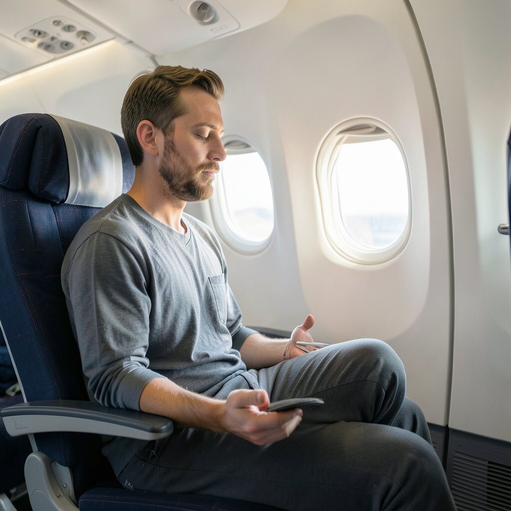 Meditating on a plane can help you relax and reduce any travel anxiety. Use a meditation app or simply focus on your breathing. Close your eyes and take deep breaths to calm your mind and body.