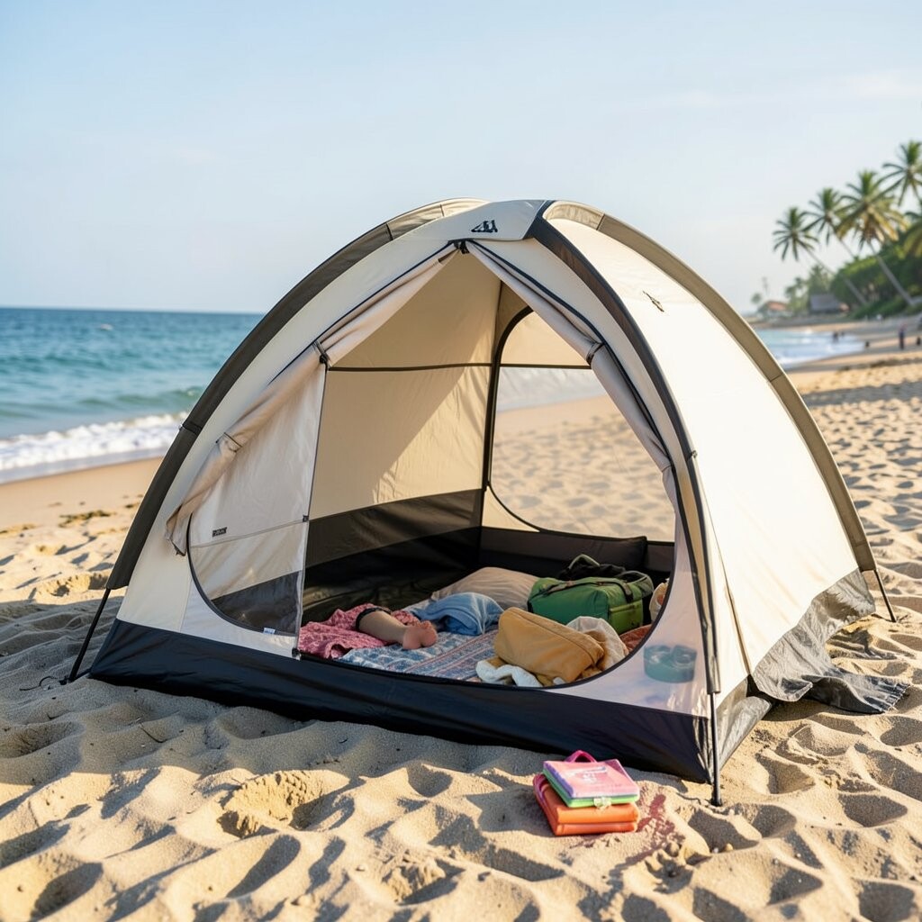 Consider the size and weight of the tent for convenient transport and setup. Some tents come with built-in floors or pockets for storing personal items. A beach tent can be a cozy retreat for taking a break from the sun or enjoying a nap.