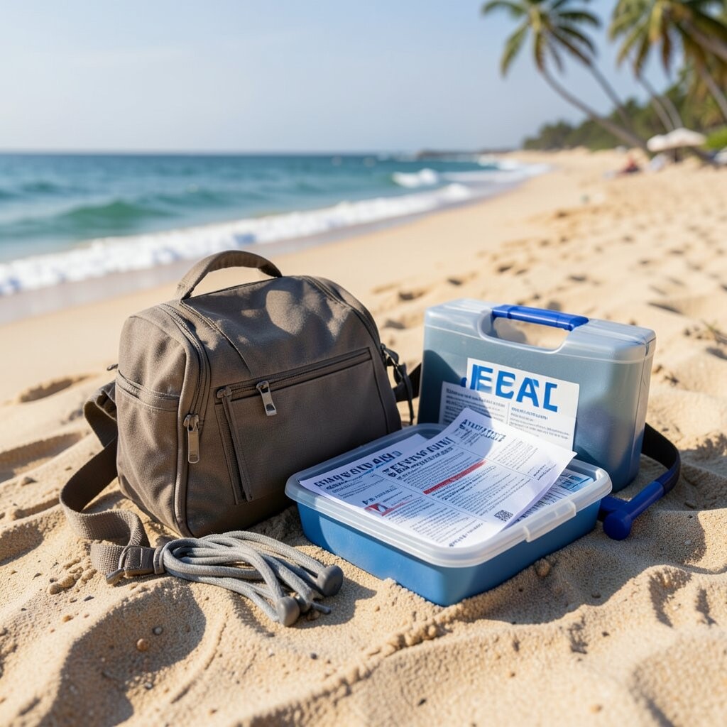 A small first aid kit is important for treating minor injuries. Include items like band-aids, antiseptic wipes, and pain relievers. A waterproof case can protect the kit from moisture.